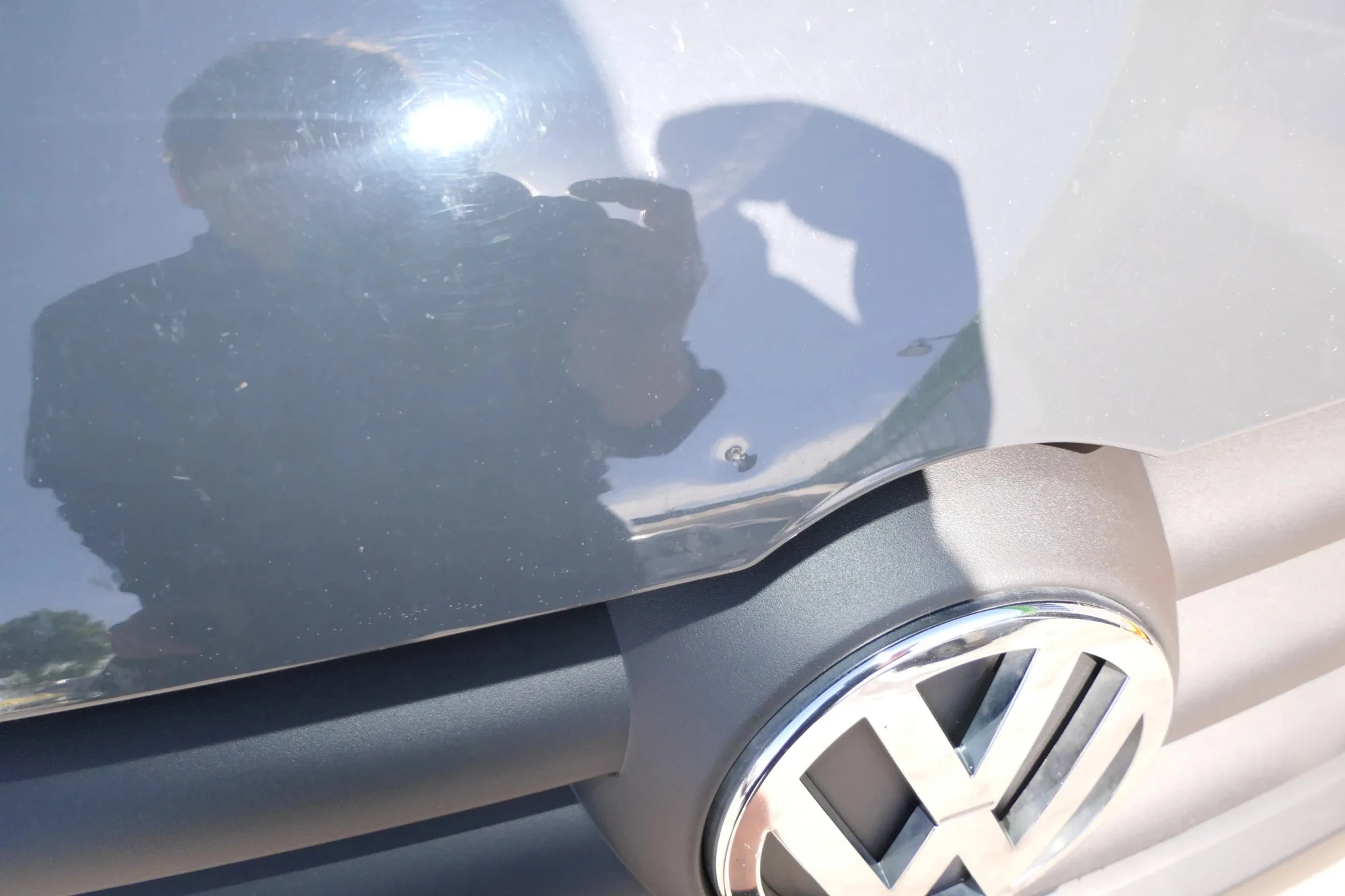 Eine Kleine mini Delle, siehe Bild 2. Angeboten wird eine Motorhaube aus einem VW Fox Bj. 2006.