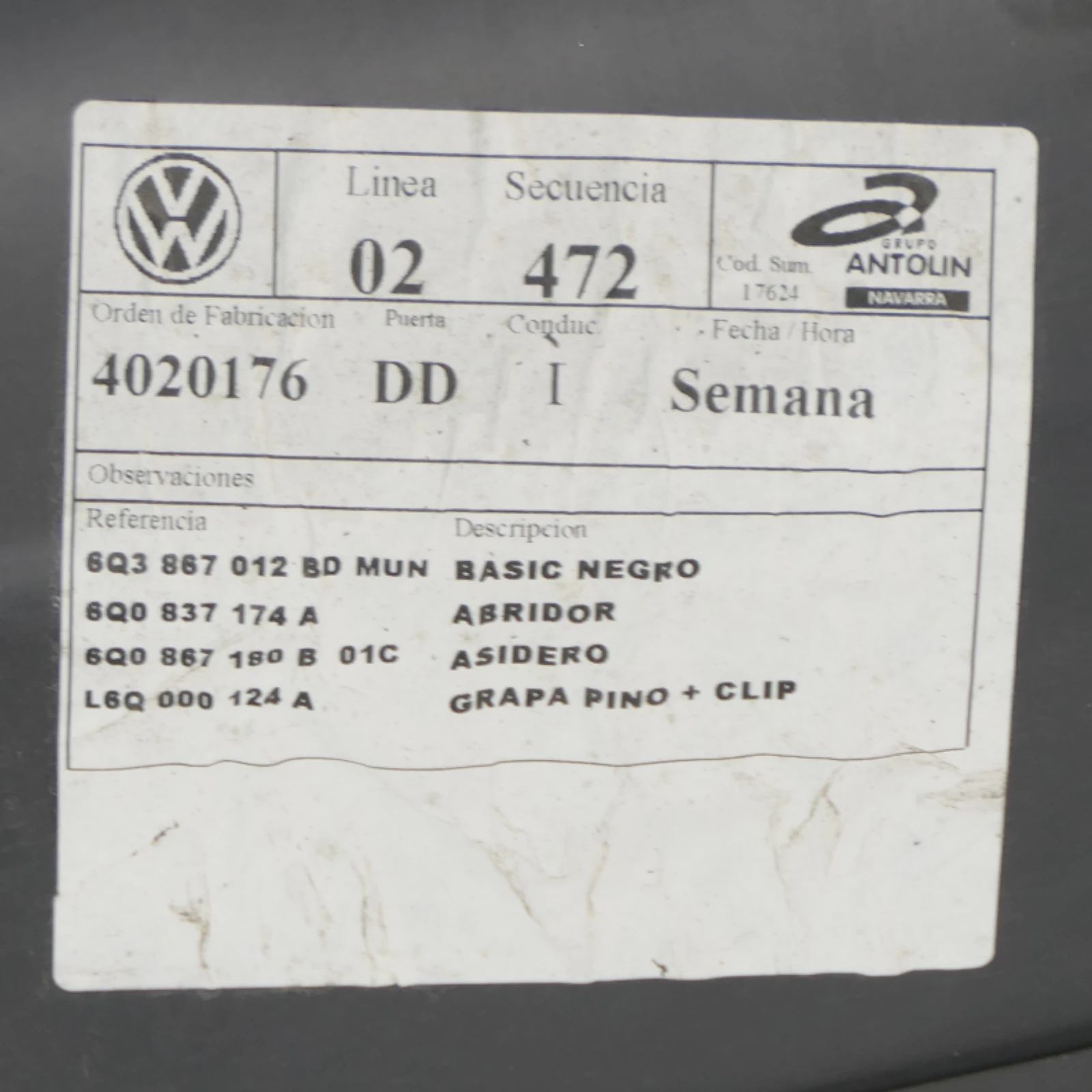 | vw | 6Q3 867 012 ED 6Q3867012ED |
