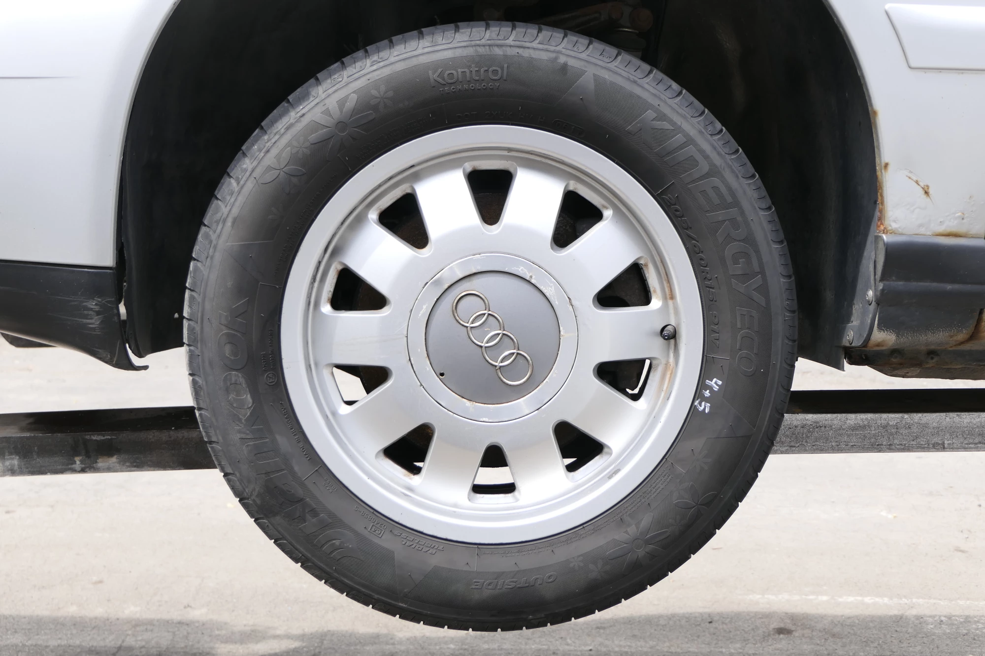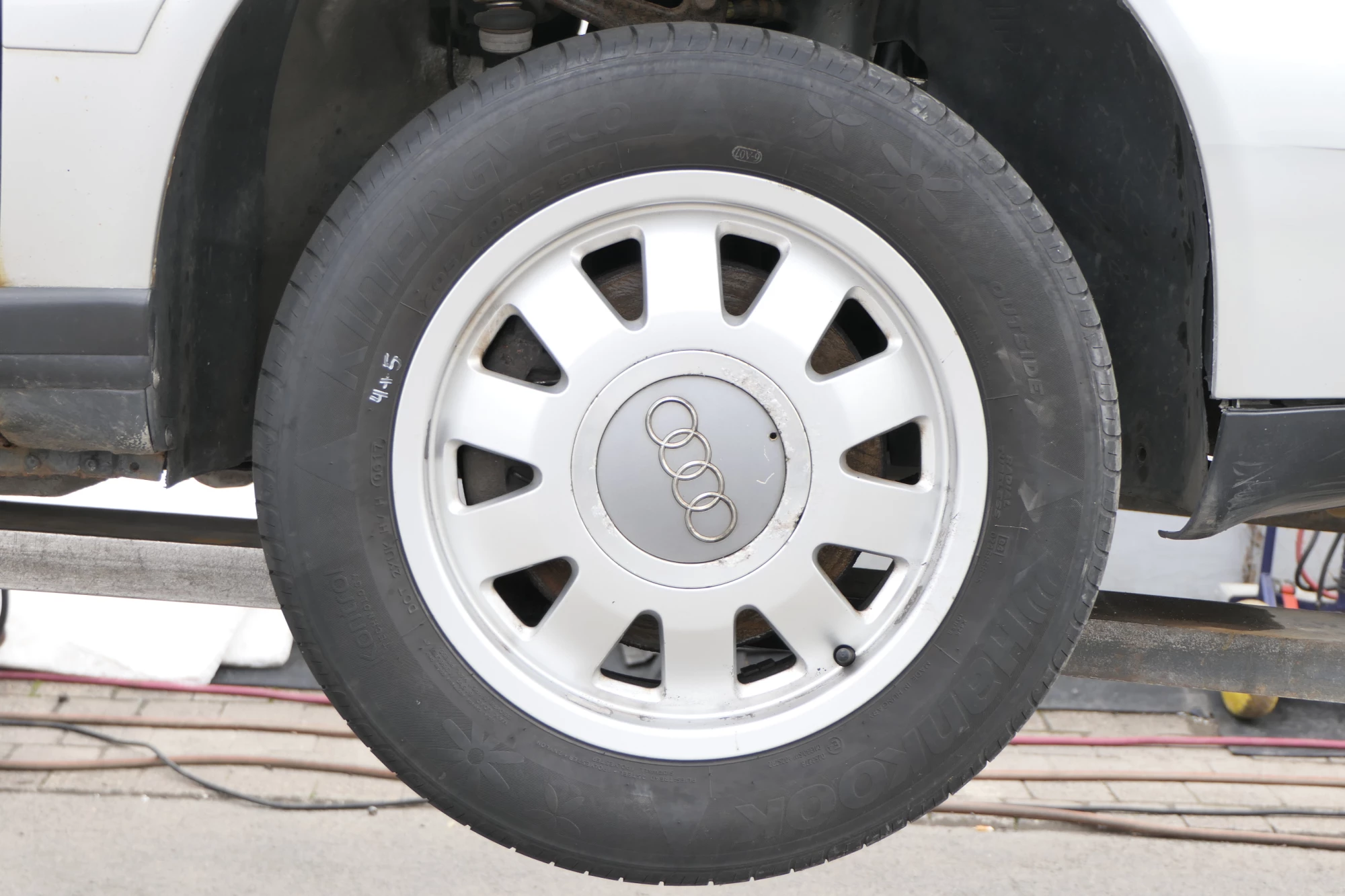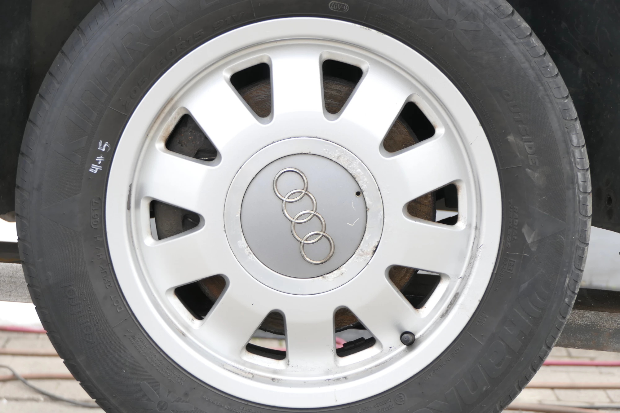 Angeboten wird ein Satz Alufelgen mit Hankook Reifen mit 2x ca. 6mm Profil, Herstellung 0816 und 2x ca. 4-5mm Profil, Herstellung 0617, auf Felge 6,5Jx15H2 ET45, aus einem Audi A6 4B Bj. 2002.