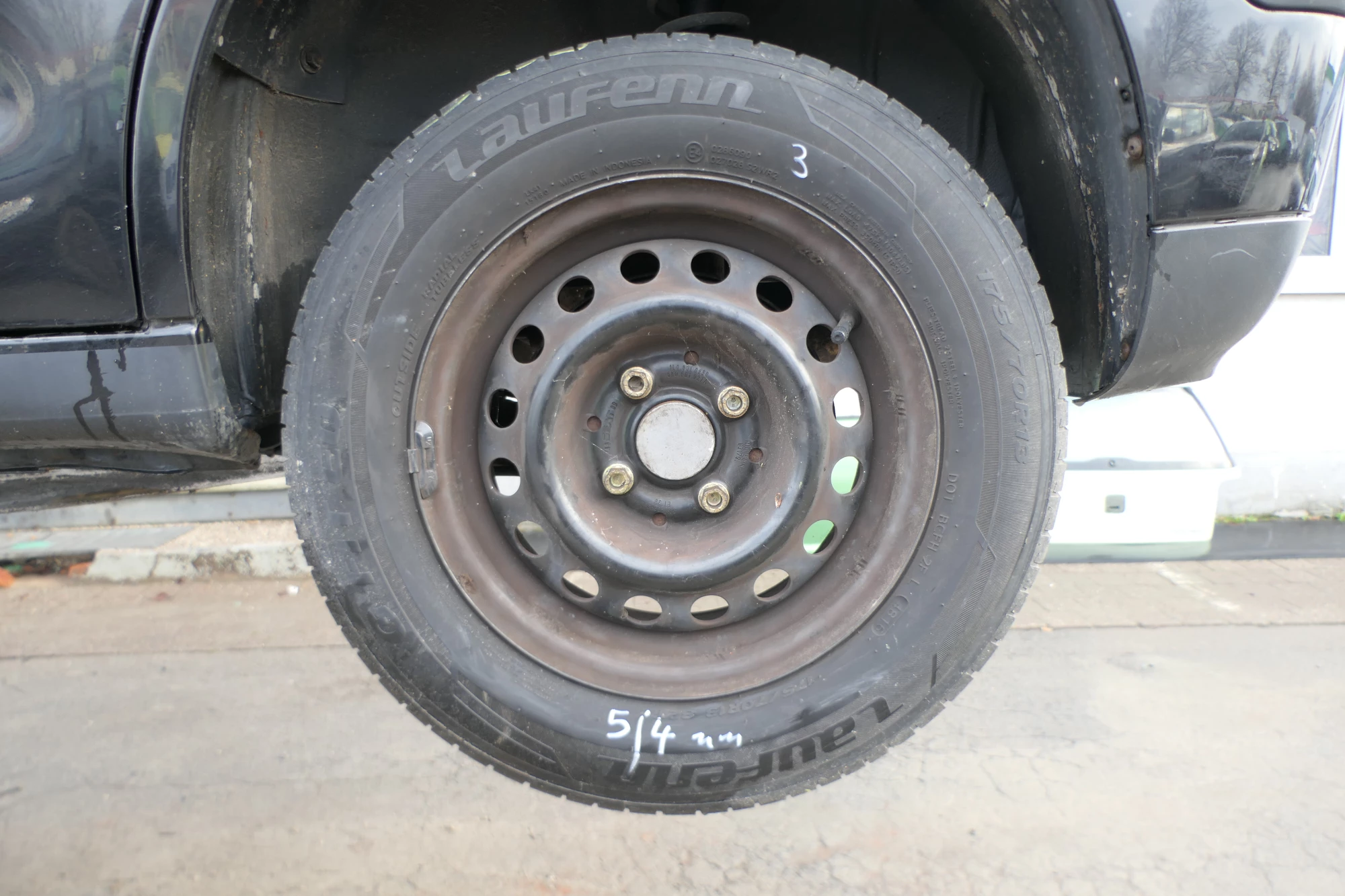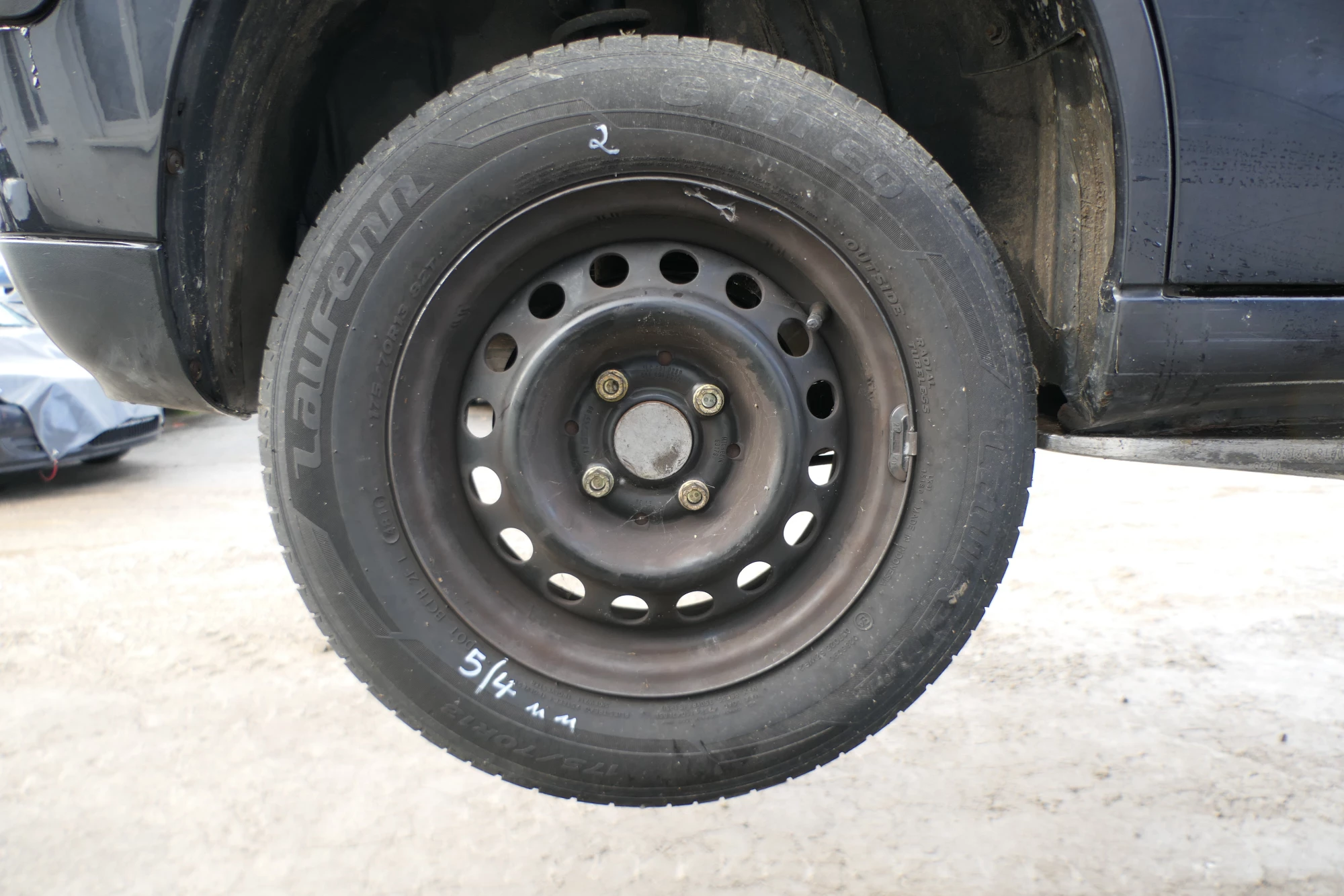 Angeboten wird ein Satz Sommerreifen mit ca. um die 4,5-5mm Profil je Reifen von Laufenn 175/70 R13 82T, Herstellung 2x1910 und 2x 4713 auf Felge 5,5jx13H2 ET 38 aus einem VW Golf 3 Bj. 1995.