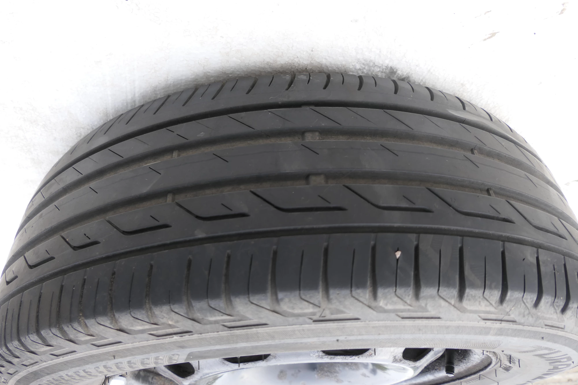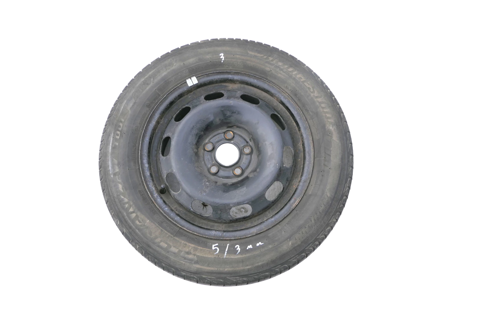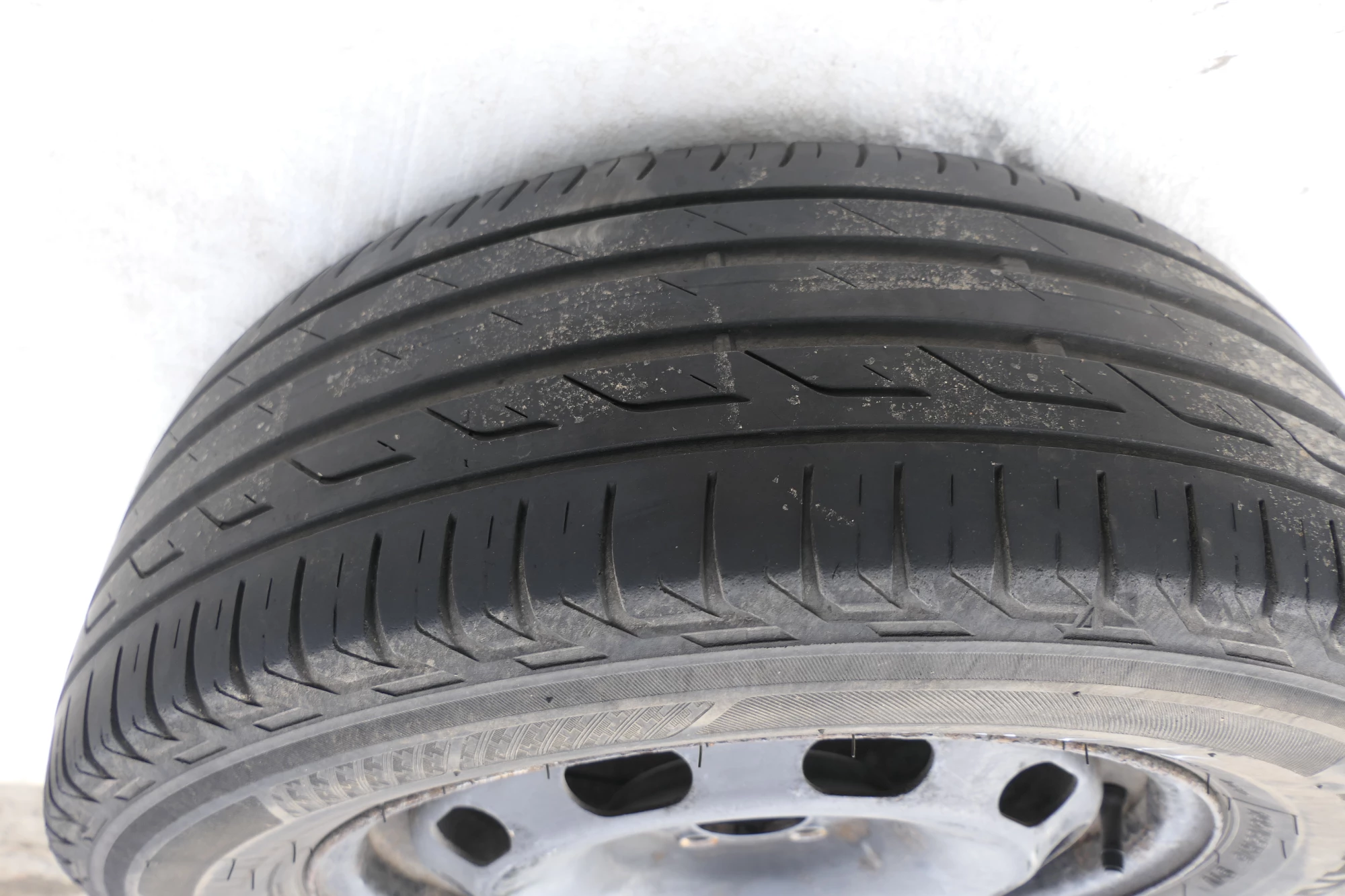Angeboten wird ein Satz Sommerreifen mit 2x ca. 7mm Profil, Herstellung 0320 von 2x Barum und 2x Bridgestone mit ca. 3-5mm Profil Herstellung 0117, 195/65 R15 91T auf Felge 6jx15H2 ET38 original VW 1J0601027H aus einem VW Golf 4 Bj. 2000.