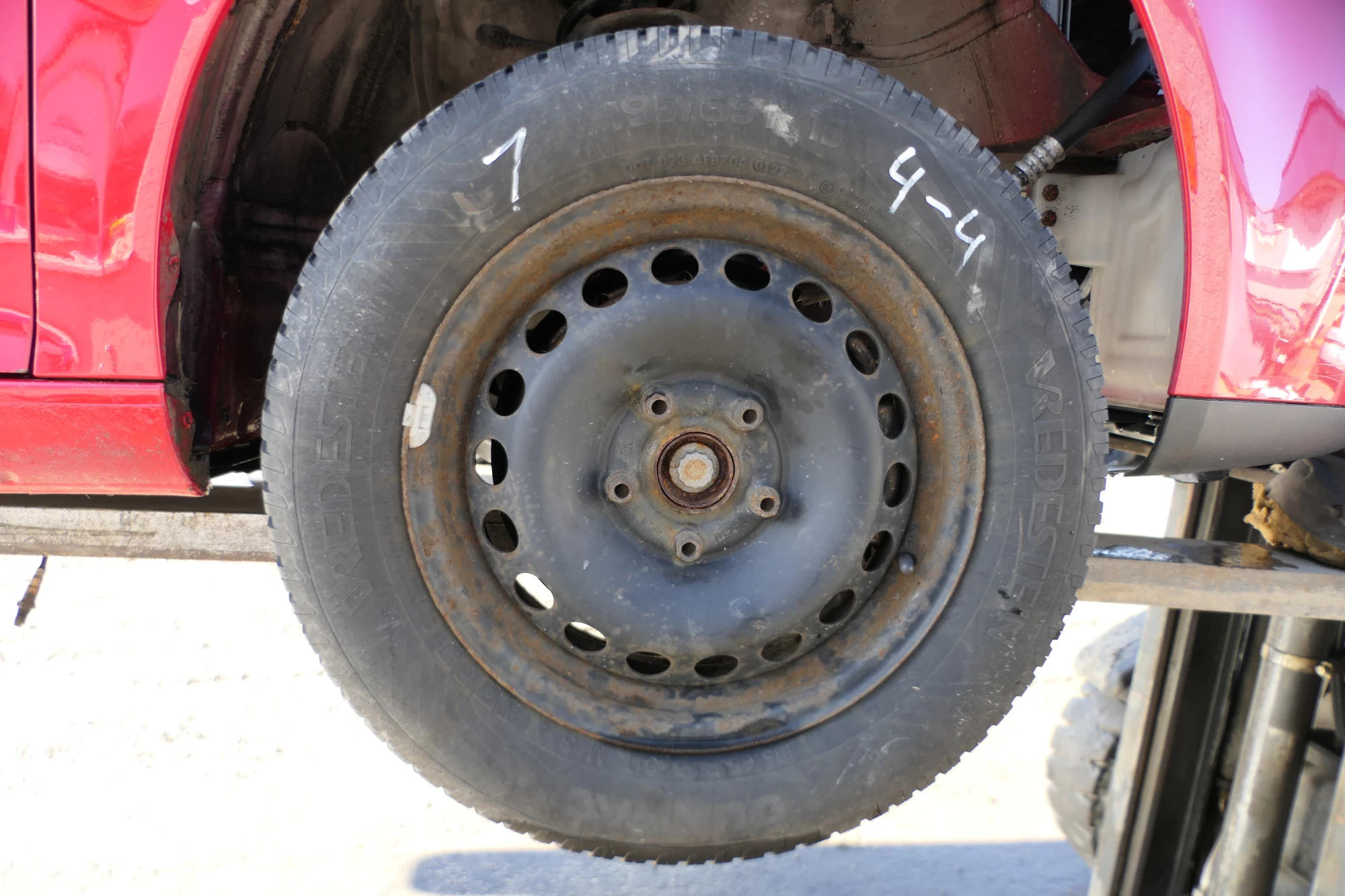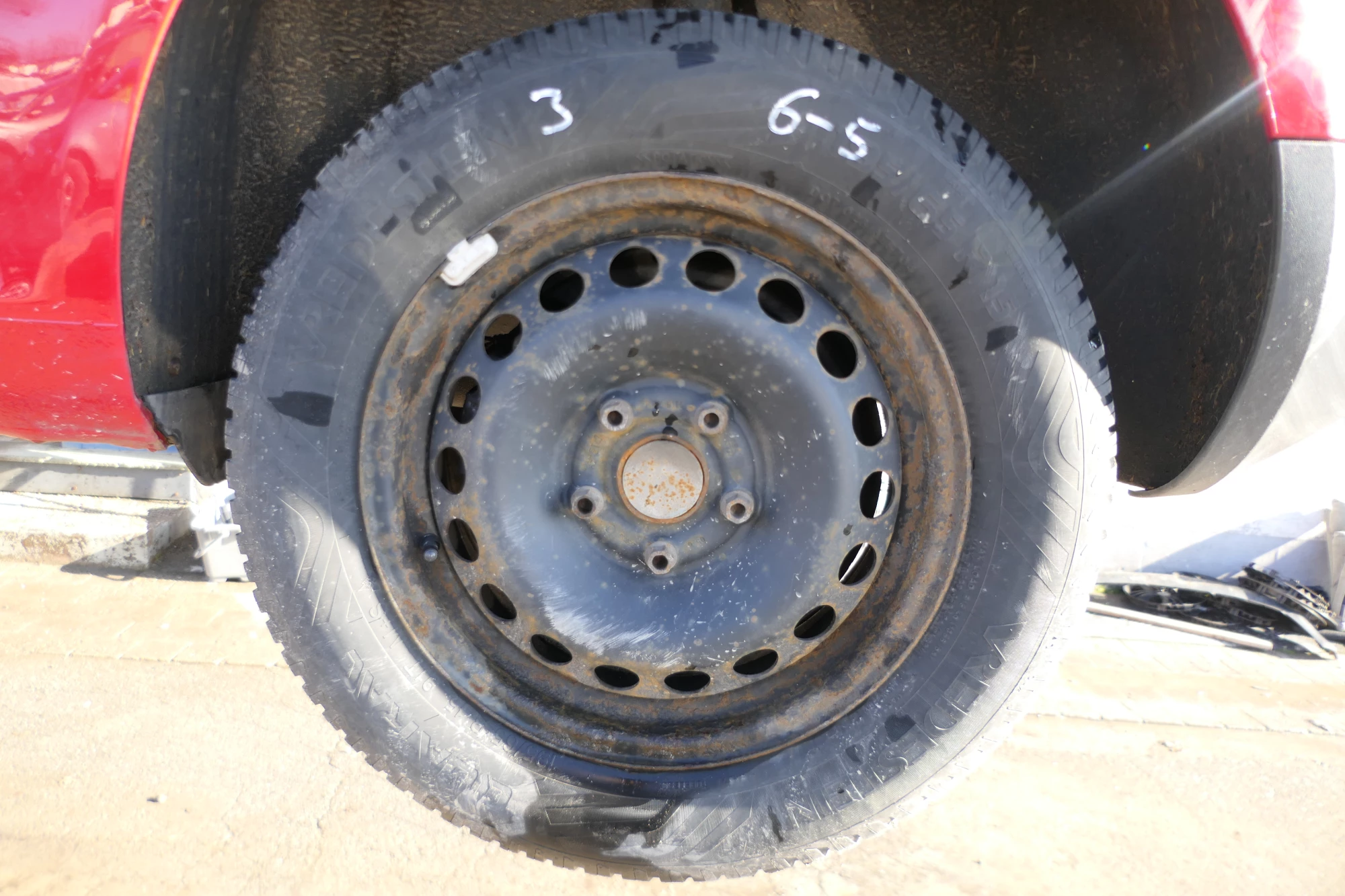 Angeboten wird ein Satz Winterreifen mit ca. 2x um die 6-7 mm Profil und 2x 6 mm von Vredestein, Herstellung 0122, 195/65 R15 91T auf Felge 6jx15H2 ET47 aus einem VW Golf 5 Bj. 2006.