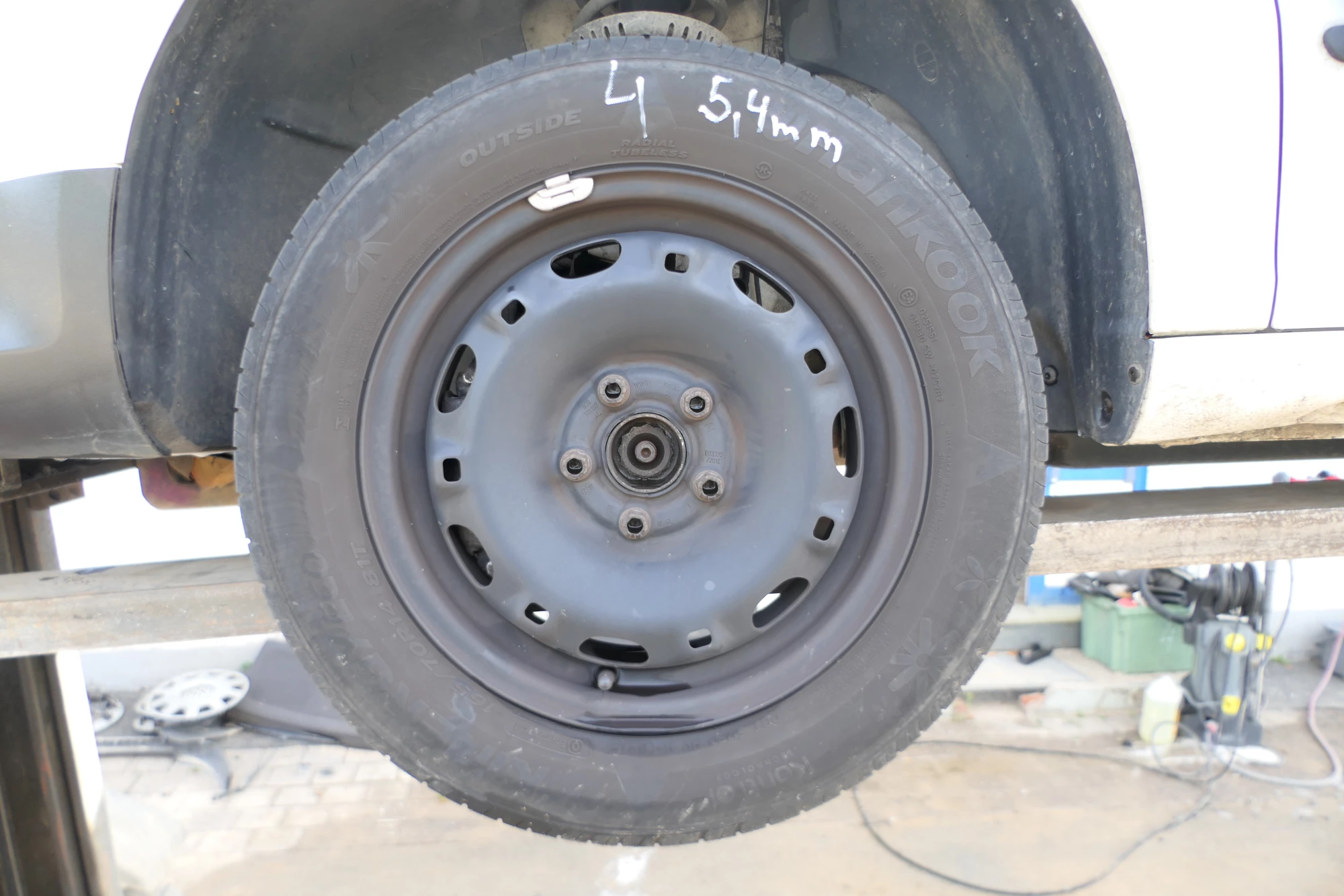 Angeboten wird ein Satz Sommerreifen mit ca. um die 5-6,5 mm Profil, von Hankook, Herstellung 0319 aus einem VW Polo 9N Bj. 2006.