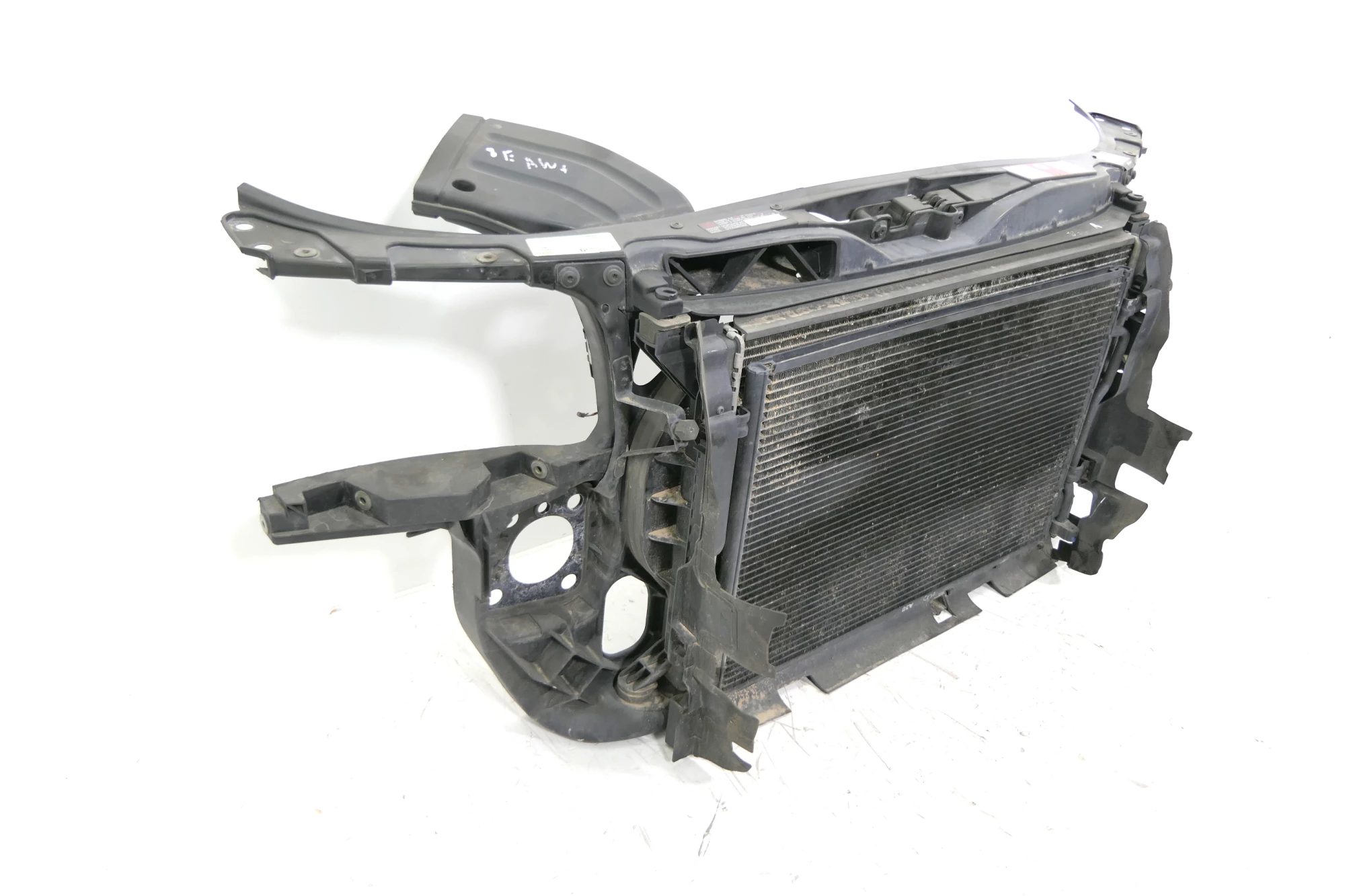 Zum Lieferumfang gehört der Schloßträger mit Kühler und Kondensator, KEINE LÜFTER, KEINE Stoßstange etc. Angeboten wird ein Schloßträger mit Kühler und Kondensator aus einem Audi A4 8E B6 1,8T Bj. 2004, auch beim TDI passend.