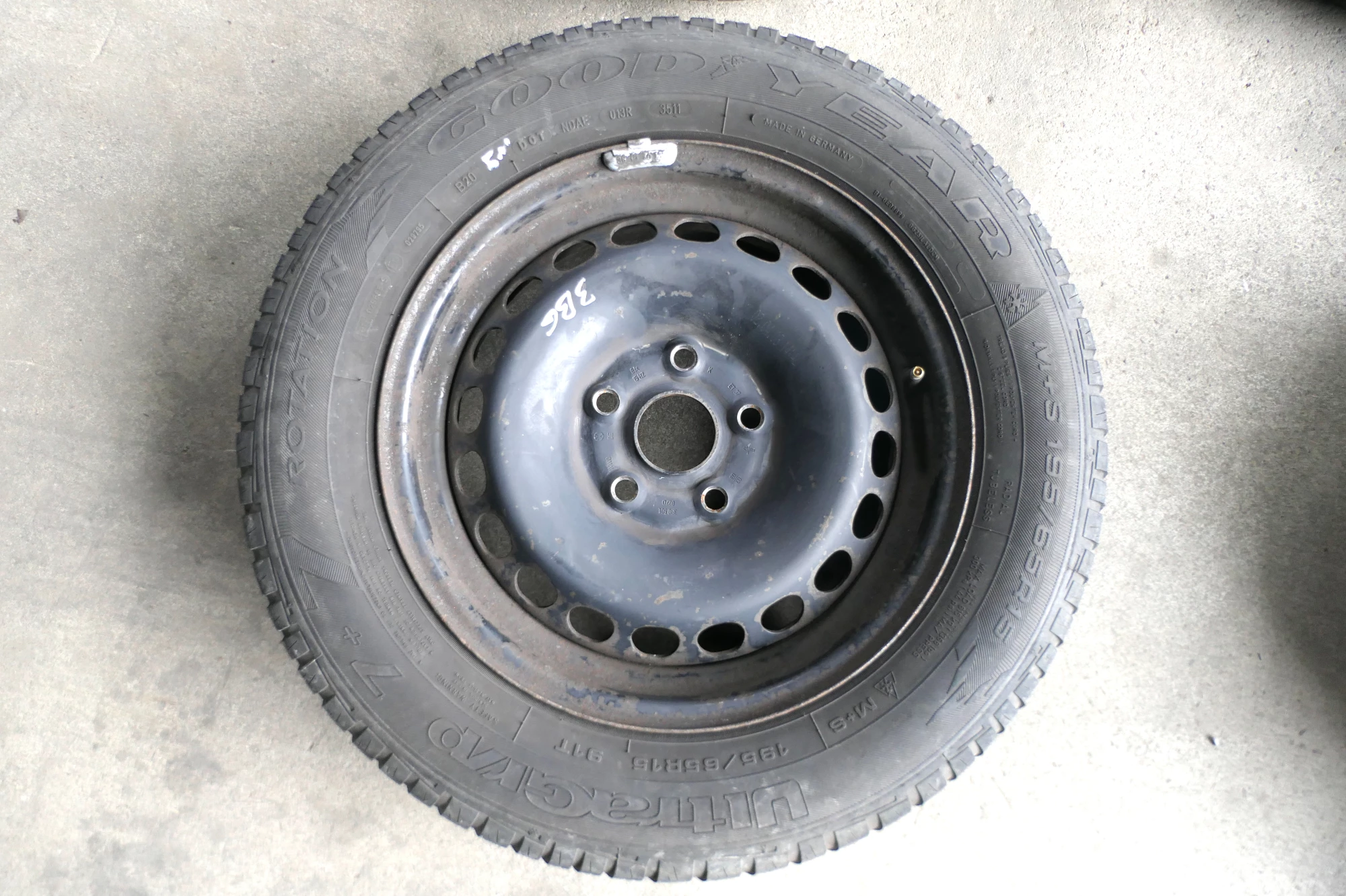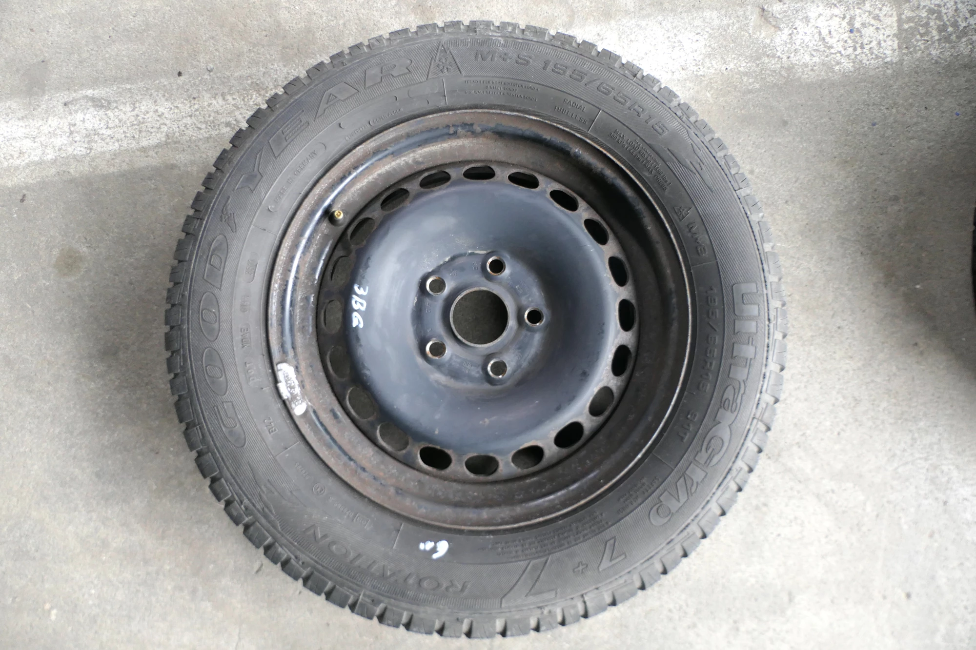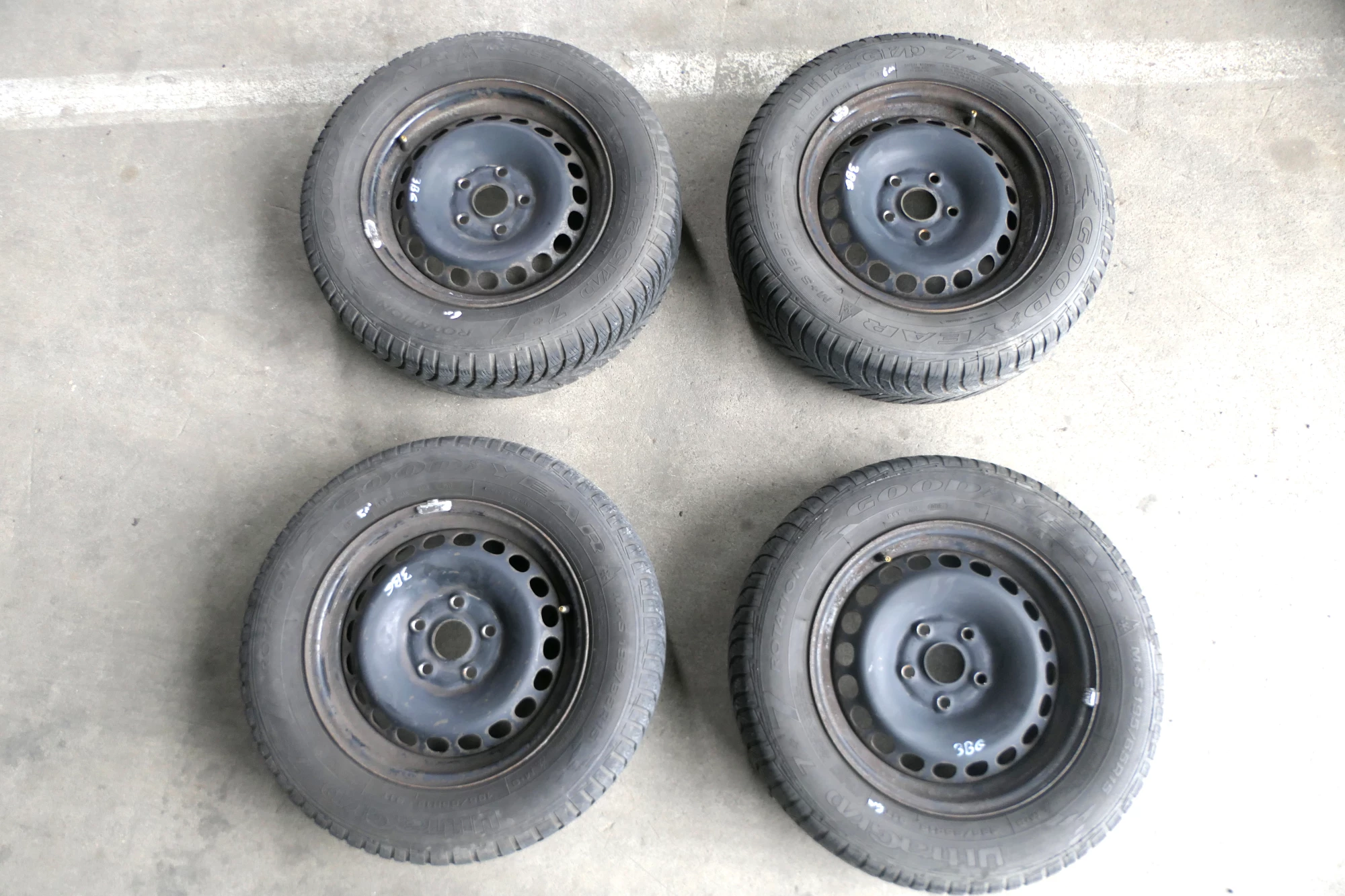 Angeboten wird ein Satz Stahlfelgen mit Winterreifen 195/65 R15 91T von Goodyear, Herstellung 3511 mit ca. 2x um die 6mm und 2x 5mm Profil je Reifen auf Felge 6jx15H2 ET37 aus einem Audi A6 4B Bj. 2000.