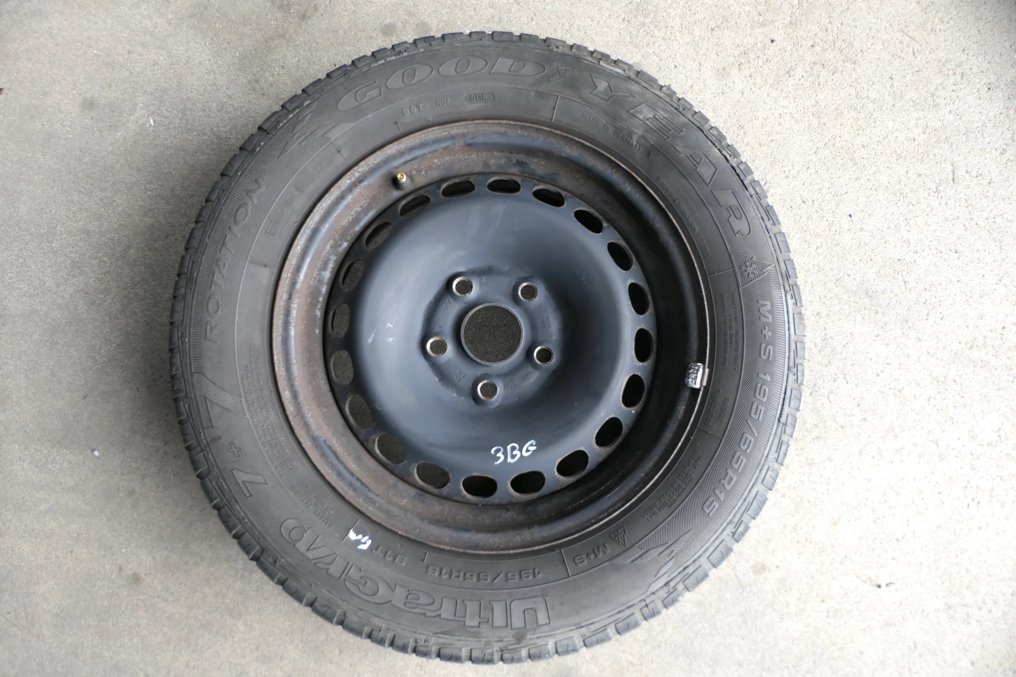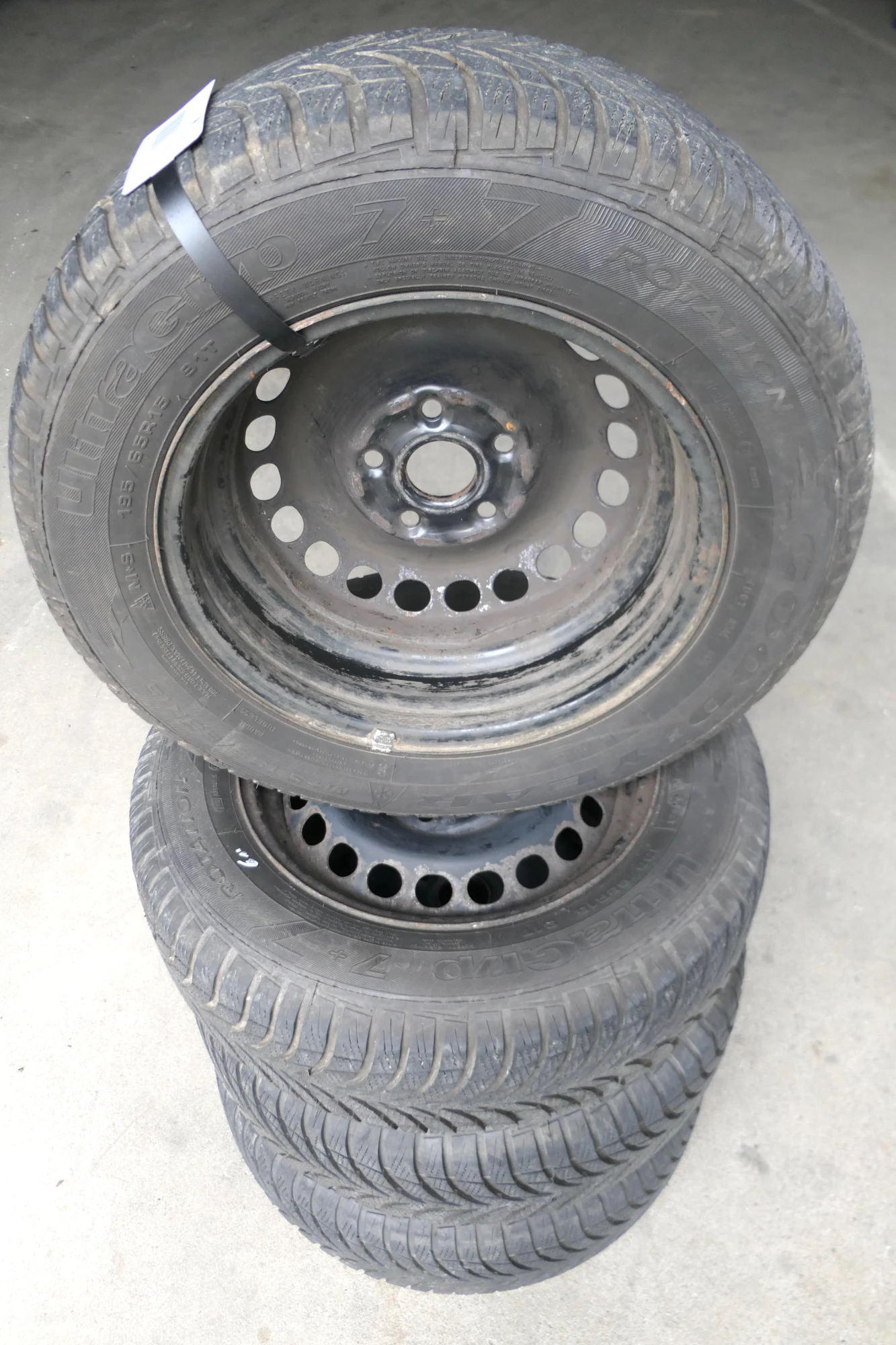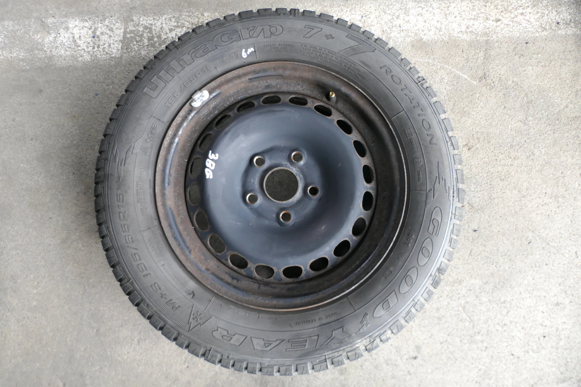 Angeboten wird ein Satz Stahlfelgen mit Winterreifen 195/65 R15 91T von Goodyear, Herstellung 3511 mit ca. 2x um die 6mm und 2x 5mm Profil je Reifen auf Felge 6jx15H2 ET37 aus einem Audi A6 4B Bj. 2000.