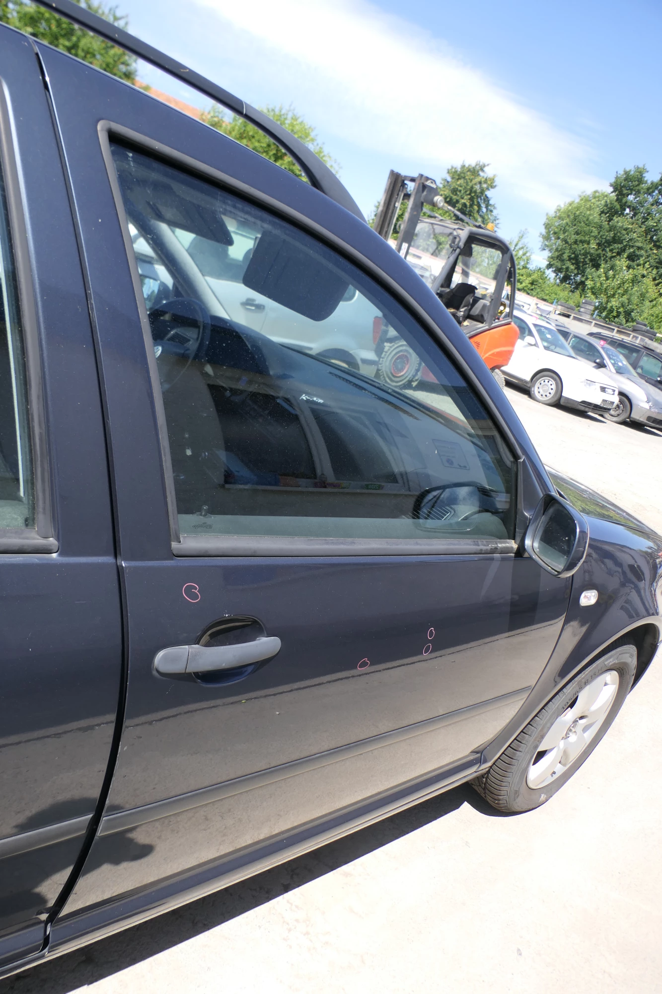 Ohne jegliche Anbauteile, ohne Spiegel, ohne Fensterheber, ohne Schloß etc. Angeboten wird eine Tür aus einem VW Golf 4 Bj. 2000 Kombi 5-Türer.