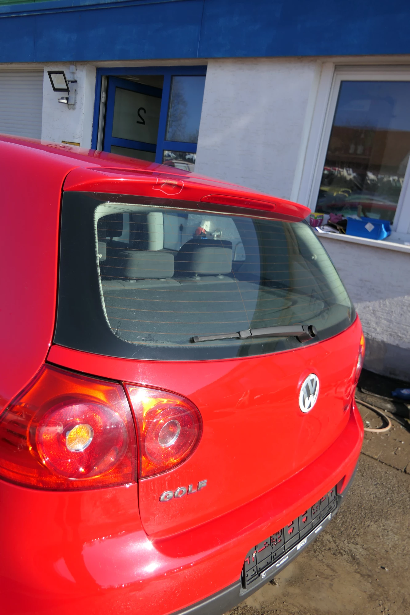 Ohne Anbauteile. Angeboten wird eine Heckklappe mit Scheibe, aber sonst ohne Anbauteile, also ohne Wischer, ohne Schloß, ohne Griff etc.,aus einem VW Golf 5 Bj. 2005 4-Türer.
