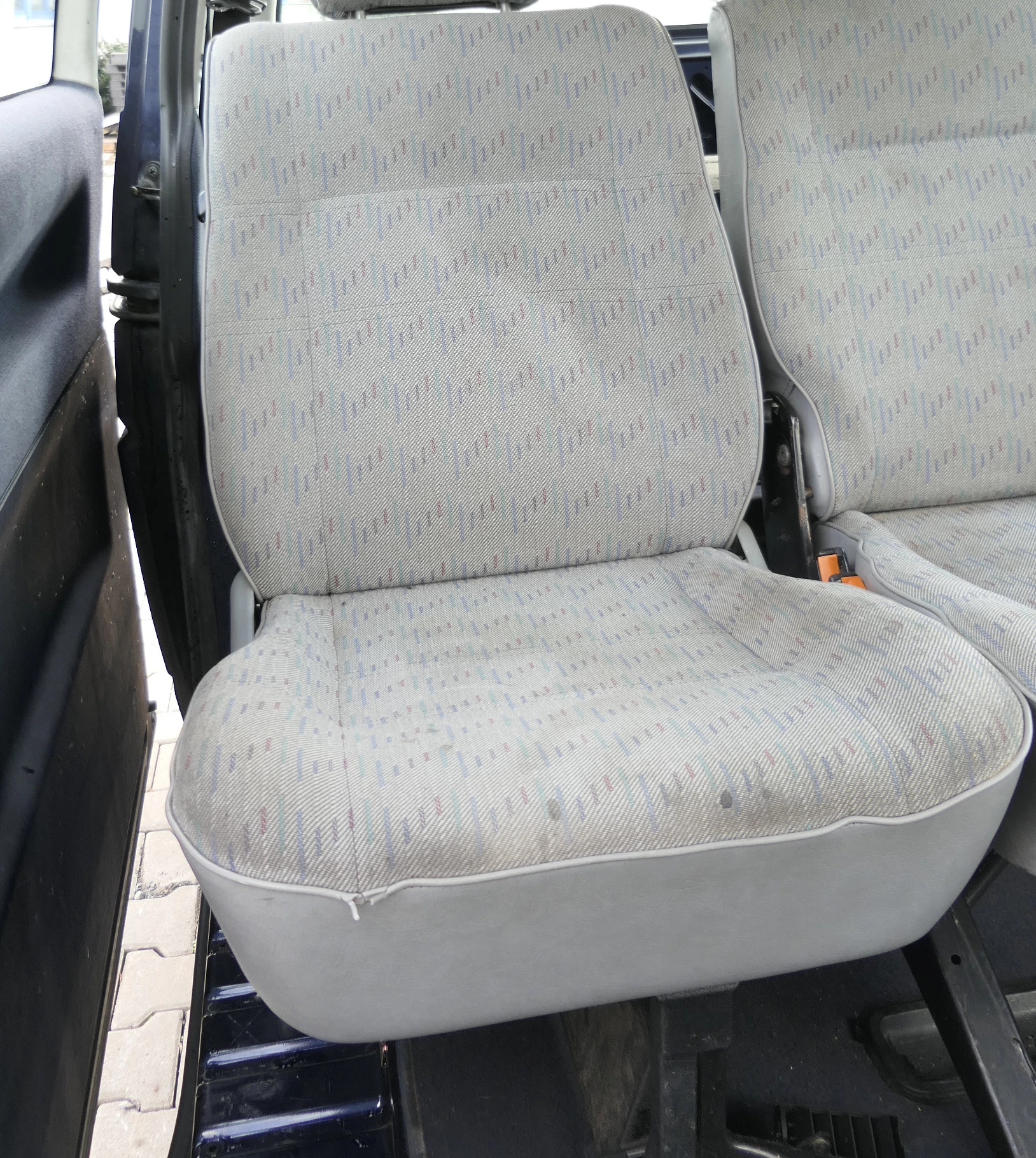 Kopfstützen ist eine dabei, die einfach grau ist. Nicht die originale! Angeboten wird ein einziger Sitz ohne Airbag (OHNE Sitzheizung) aus einem VW Transporter T4 Bj. 1995.